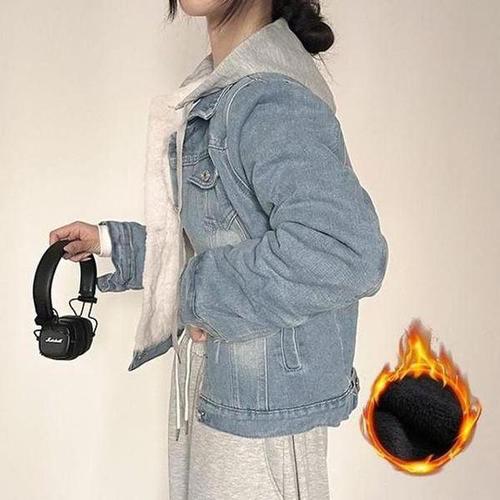 [옷자락]여자 겨울 캐주얼 따뜻 털안감 코튼 후드 데님 청자켓