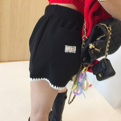 아이미마인 / 스포티 하이웨스트 레이스패치 A라인 밴딩 골지 니트반바지 (3color)