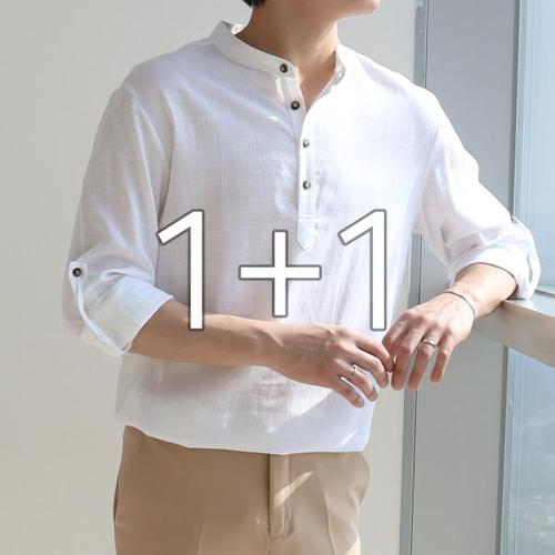[지지블랙][1+1] 시드 헨리넥 쿨 린넨 셔츠 시원한 여름 남방