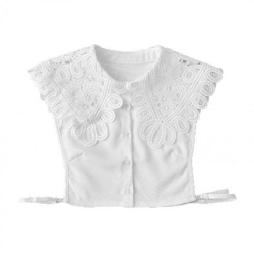 이너카라 여성 플리츠 레이스 하이넥 페이크 카라 넥 케이프