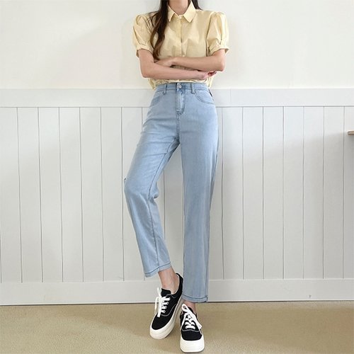 부츠컷 청바지 /봄여름 여성 세미 밴딩 스트레이트핏 나팔 바지 와이드 통 9부 스판 텐셀 슬랙스핏 데님팬츠