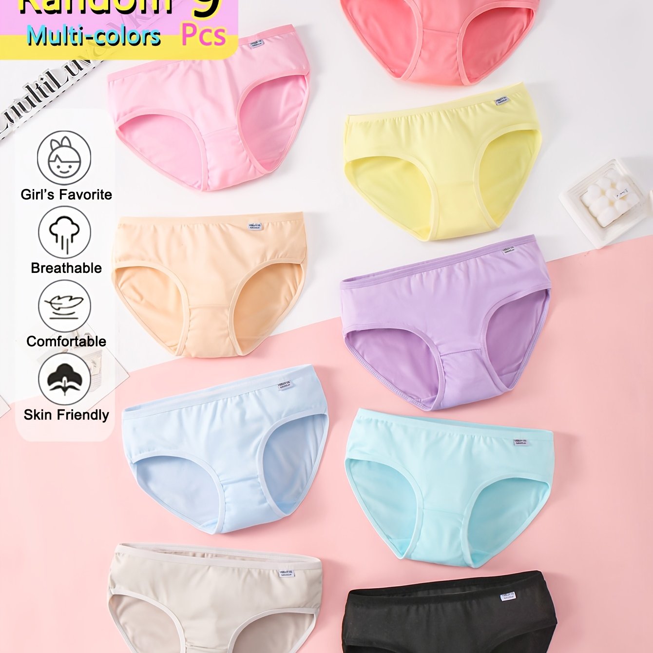 TEMU 십대 여아용 삼각 속옷 9개 세트, 캔디 컬러 랜덤 구성 속옷, 장난스러운 디자인의 십대 데일리 언더숏 패션웨어