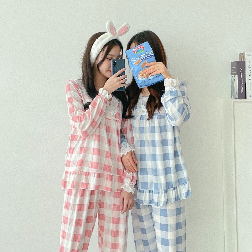 긴팔 캔디 프릴체크잠옷 잠옷 여자세트 상하의세트