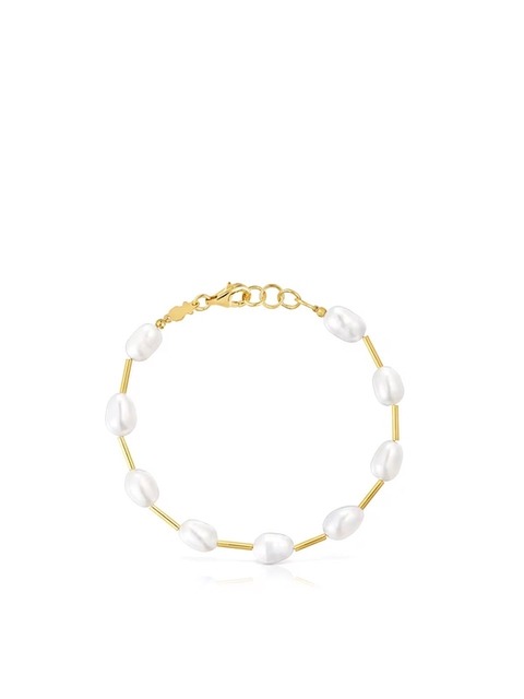 [토스] [TOUS] 18K 골드 버메일 실버 글로스 튜브 진주 팔찌 1004121300