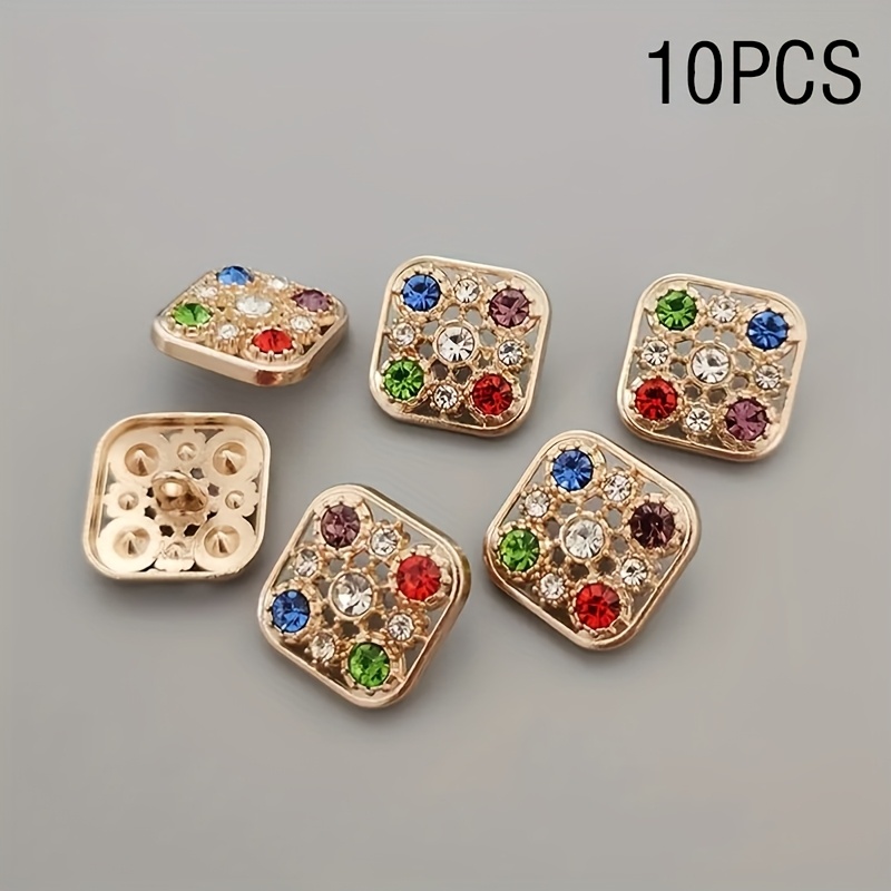 TEMU 고급 빈티지 홀로우 컬러풀 라인스톤 버튼 10개 세트, 사각형, 스웨터, 코트, 셔츠, 청바지 재봉용 액세서리
