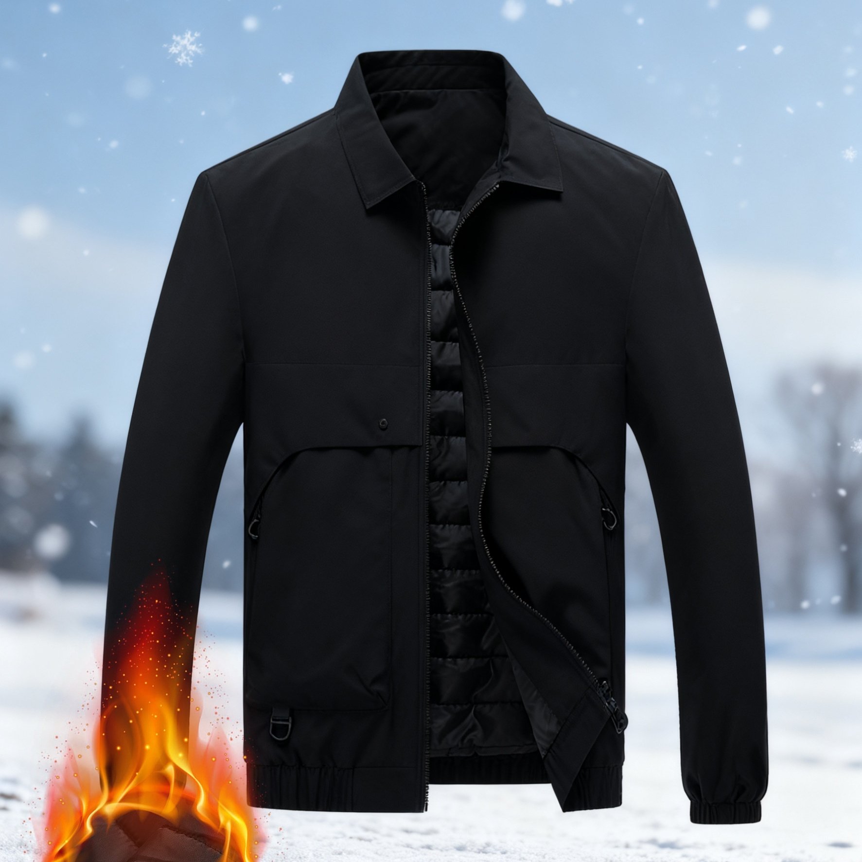 TEMU 남성용 경량 하이로프트 재킷 - 스탠드 칼라 지퍼업 코트, 포켓 포함, 루즈핏 캐주얼 아우터, 일상 및 포멀 행사용 - 올 시즌 충전재