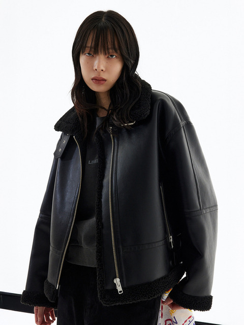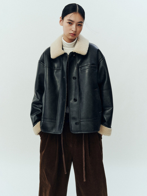 [스튜디오 톰보이] 보아 퍼 신세틱 무스탕 점퍼_블랙 9105461116