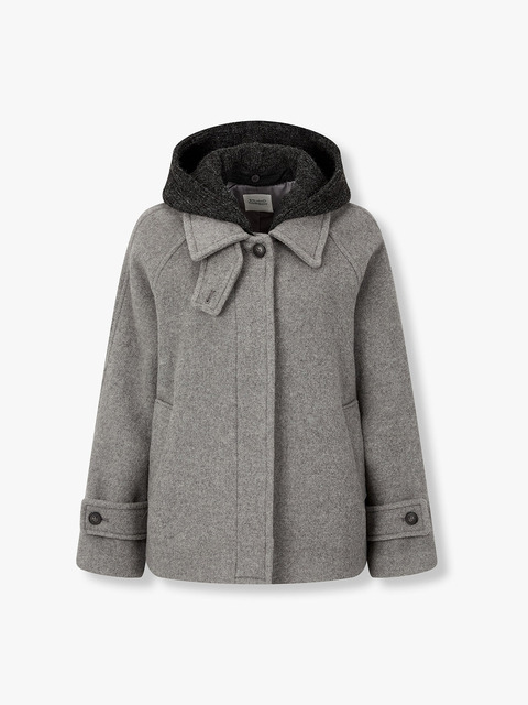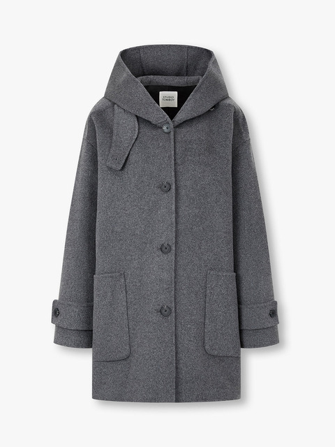 [스튜디오 톰보이] 핸드메이드 후드 울혼방 하프코트_멜란지 다크그레이 9175411981