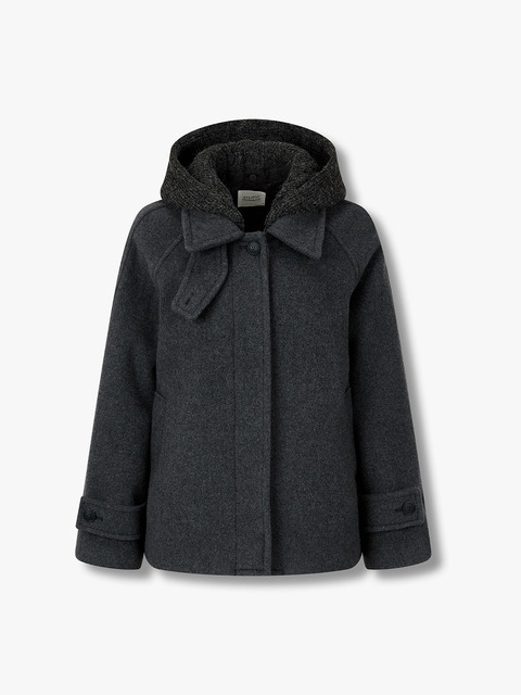 [스튜디오 톰보이] 니트후드 포인트 울 숏코트_챠콜 9175413993