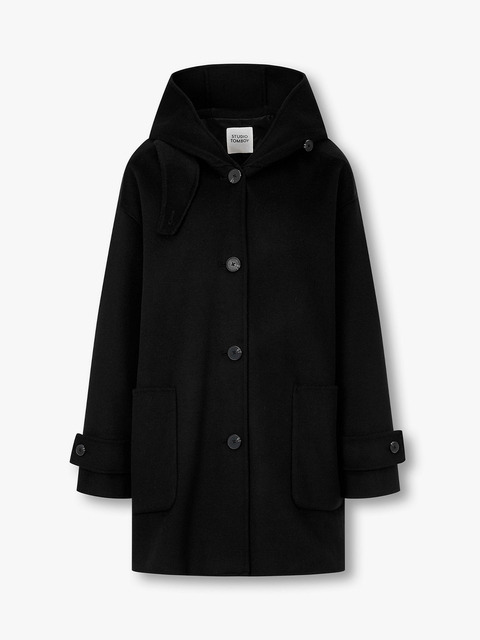 [스튜디오 톰보이] 핸드메이드 후드 울혼방 하프코트_블랙 9175411981