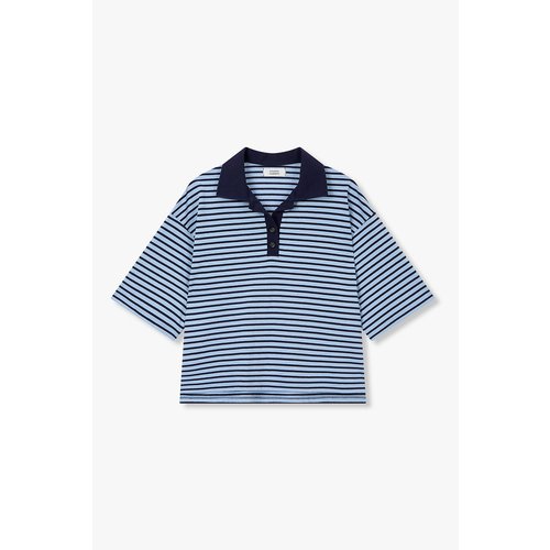 [스튜디오 톰보이] 스트라이프 카라 넥 반팔 티셔츠_블루 9176222999