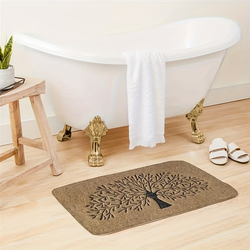 TEMU 생명의 나무 환영 도어매트 - 미끄럼 방지, 베이지 버랩 질감 디자인과 검은 나무 자수, 현관, 침실, 주방 및 욕실 장식에 완벽, 현관 장식 | 나무 생명 디자인 | 폴리에스터 도어매트, 현관용 환영 매트