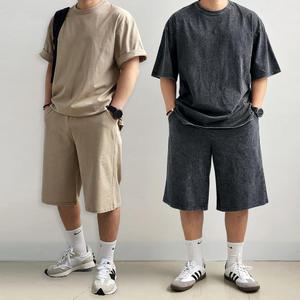 [쿼터]남자 더블 핀턱 와이드 트레이닝 팬츠 키작남 커플 통큰 밴딩 바지 숏 롱 2타입