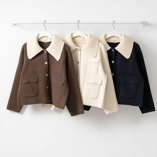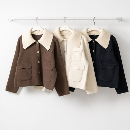 [옷자락] 여성 투웨이 카라 포켓 부클 니트 숏 자켓