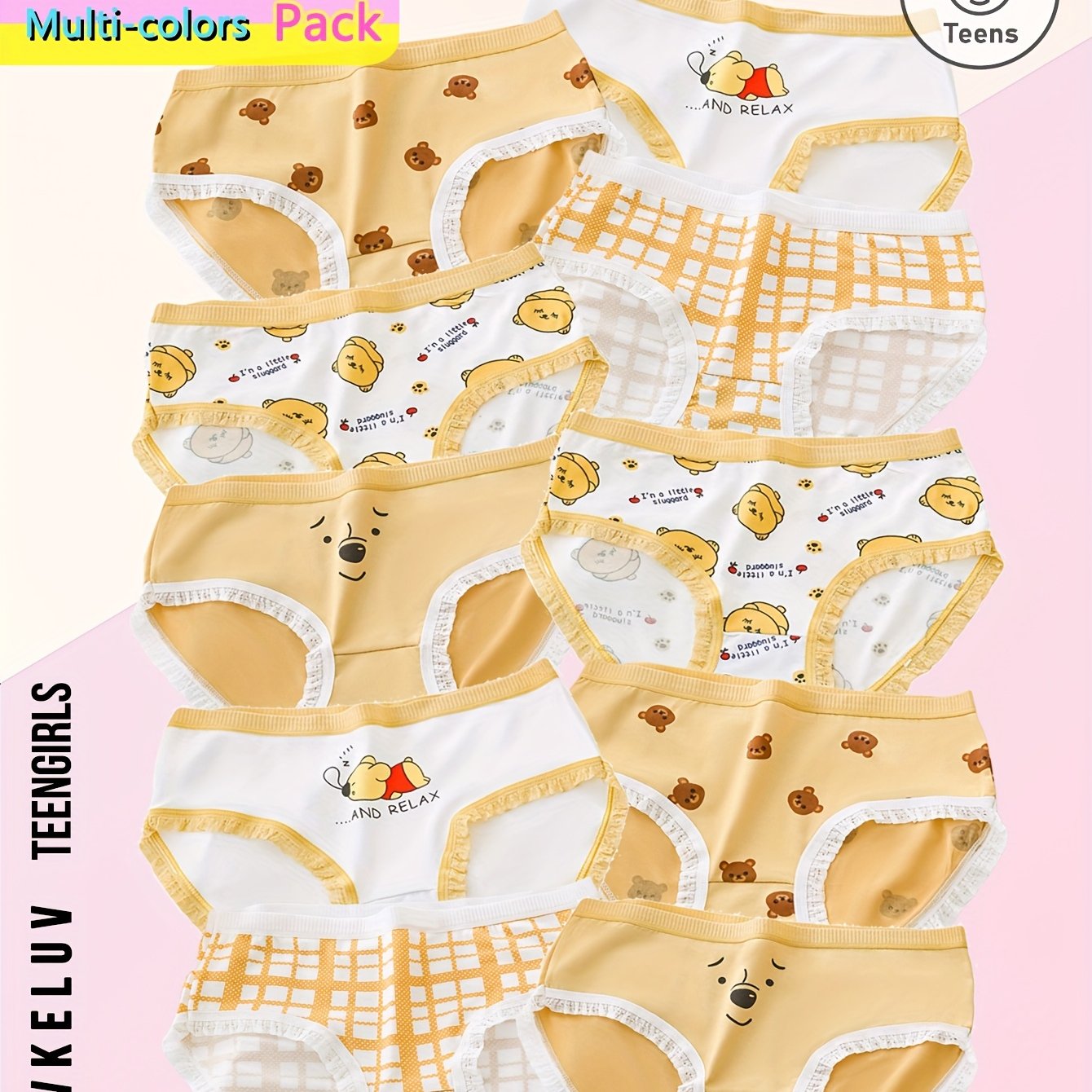 TEMU 7개 랜덤 멀티컬러 여아용 귀여운 만화 패턴 삼각 팬티, 편안한 미드 웨이스트 탄성 소프트 통기성 러플 엣지 십대 속옷, 십대용