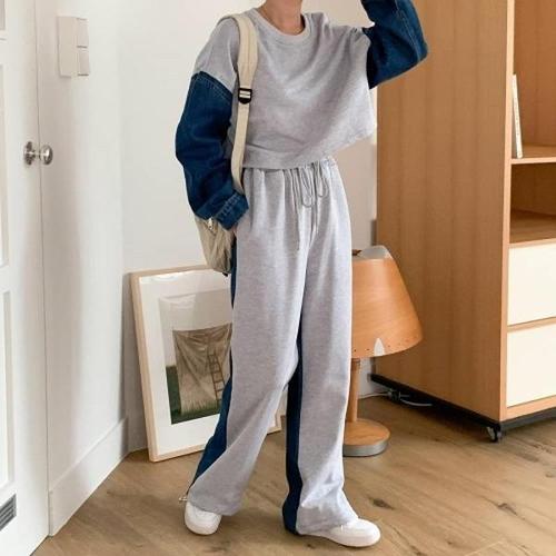 [다잇템][다잇템] 여자 조거 콘트라스트 트랙수트 언발 면원단 진 세트_18914072_588872