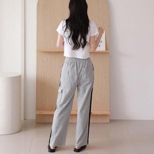 [다잇템]여성용 넓은 트랙수트 콘트라스트 프릴 팬츠