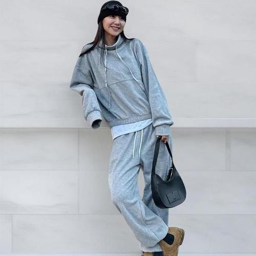 [다잇템][다잇템] 여자 포근 보온 넓은 2WAY 트랙수트 모양 후디집업 세트_24110406_588872