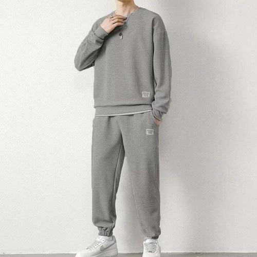[셀럽하우스]셋업 DKDR4595 2컬러 와플 남자 맨투맨 트레이닝세트 조거팬츠