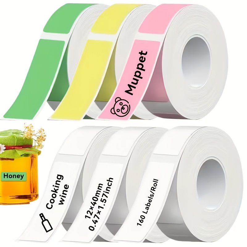 TEMU 6롤 (핑크/옐로우/그린 3롤) 라벨 테이프, D30/Q30/D32/P11/P15/4 프린터용, 얼룩 방지 접착 시트, 4 프린터 리본과 호환, 사무실, 학교, 가정용 - 멀티컬러 테이프