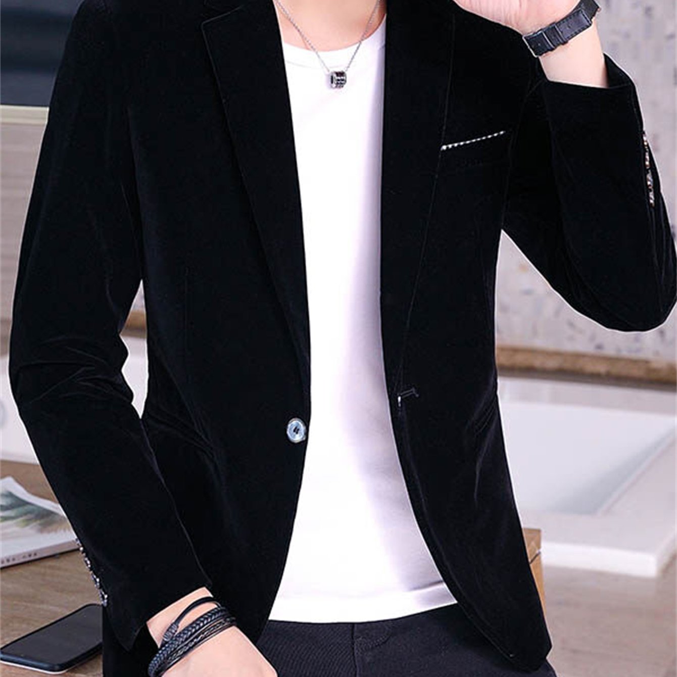 TEMU 남성용 골든 벨벳 자켓, 남성용 벨벳 수트, 봄/가을 남성 수트