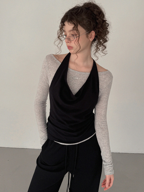 [트위] 베런 홀터넥 나시 긴팔 티셔츠 세트