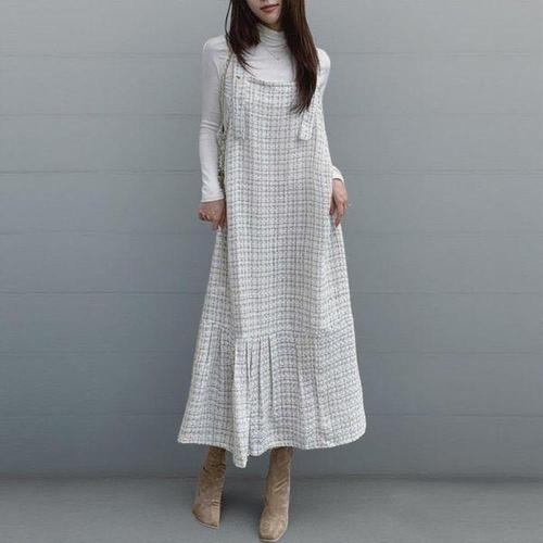 여자 봄 가을 겨울 트위드 라운드 플레어 민소매 나시 롱원피스 모임룩 하객룩 오피스룩 결혼식