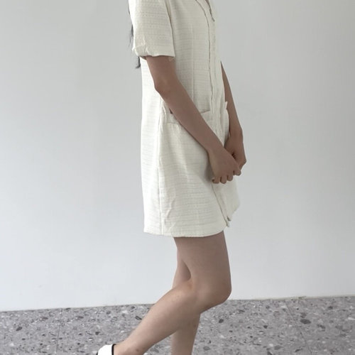 예쁨시전 여름 트위드 테일러드 반팔 미니 원피스