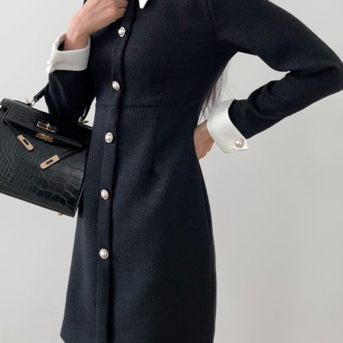 클루이가넷 / 우아한 트위드 진주 단추 미니 드레스