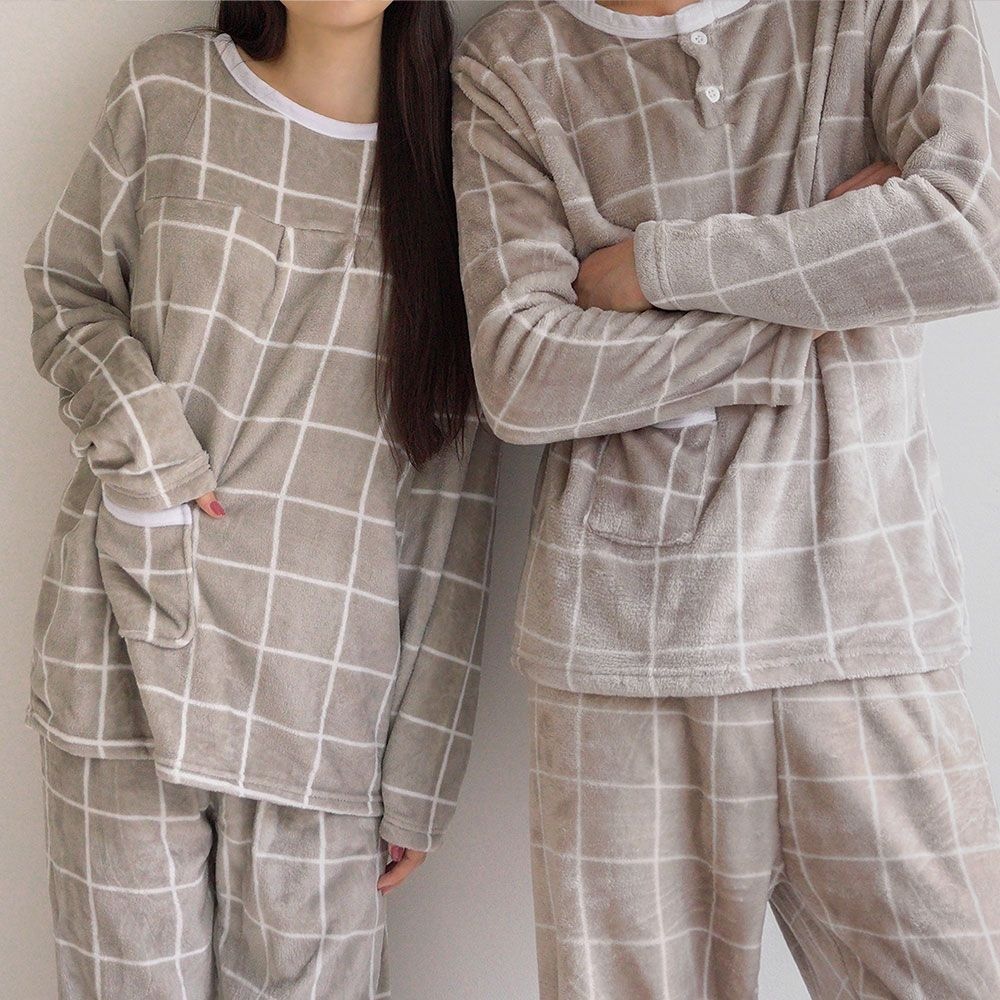 수면 모던체크 극세사 밍크 잠옷 여성 남성