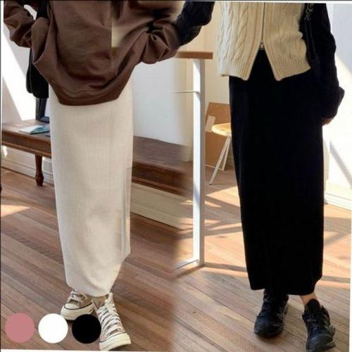 [하프클럽/]캐주얼 슬림핏 날씬 겨울 벨벳 트임 골덴 롱 스커트