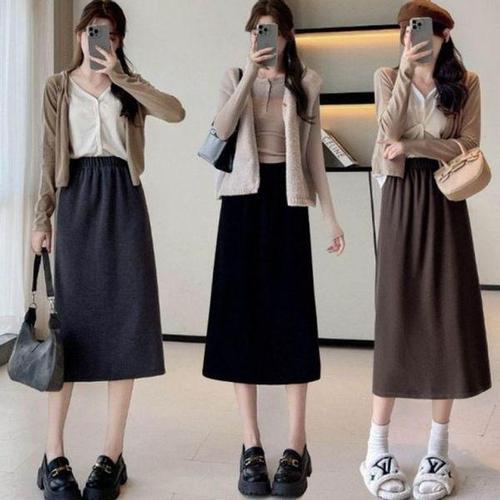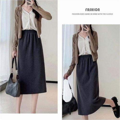 [에이치플러스몰]스판 롱스커트 훌륭한 뒷트임가을스커트코디 프리미엄