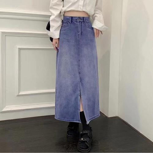 [오너클랜]인기상품 여성 중청 하이웨이스트 앞트임 데님 롱스커트 치마 [WE8758E_250918]