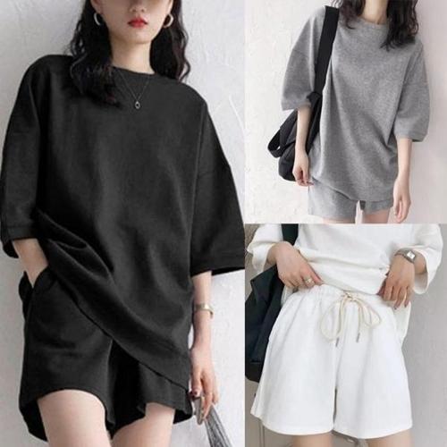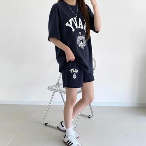 여자 하프팬츠 부드러운 박시핏 반소매티 세트