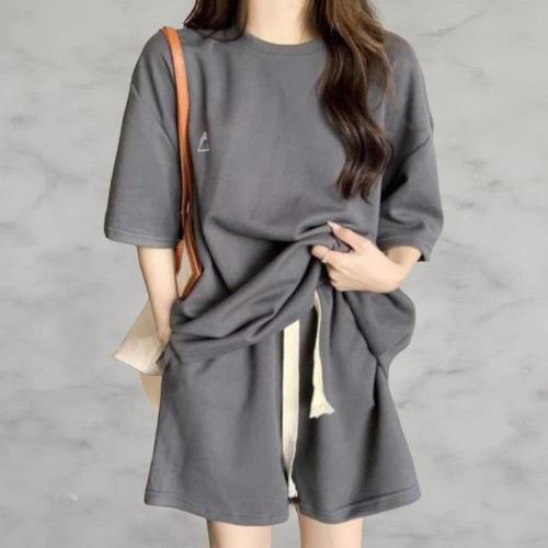 [옷자락]여성 스트릿 스타일 심플 루즈핏 티셔츠 반바지 세트