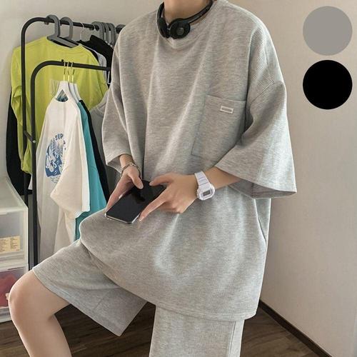 남자 와플 스트릿 오버핏 반팔티 반바지 추리닝 세트 WC7BBBD