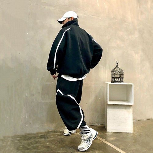 맨스토리 / 기모 반오픈 써클 트랙 배색 남자 겨울 맨투맨 와이드팬츠 세트