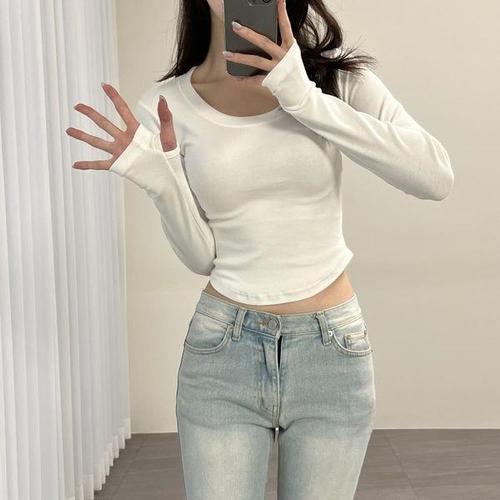 [옷자락]여자 핸드워머 코튼 피치기모 슬림핏 무지 티셔츠