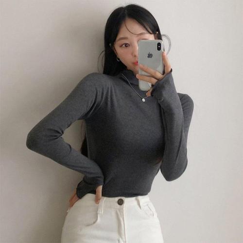 [옷자락] 여자 앙고라 목폴라이너 딱붙티 슬림 핸드워머 티셔츠