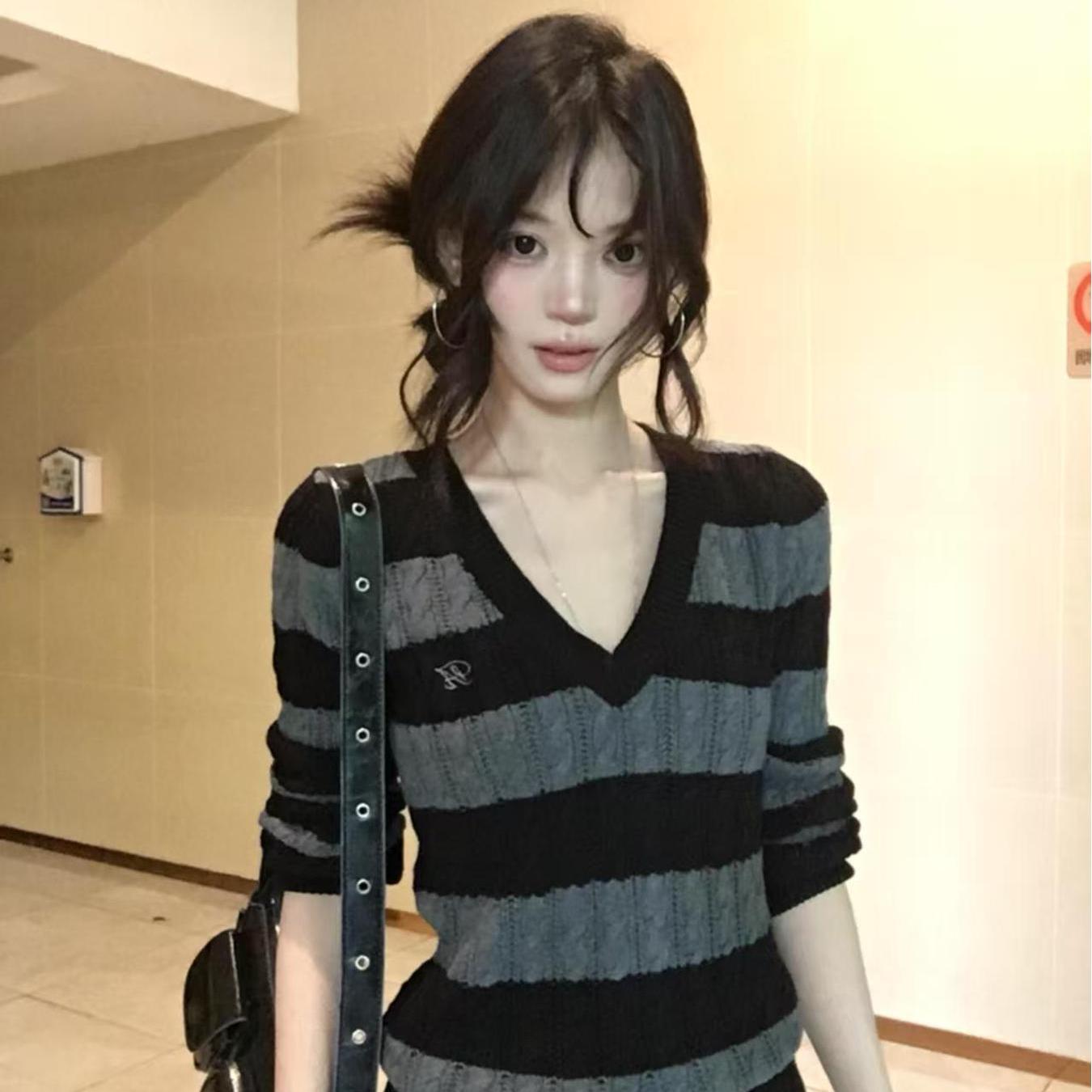 TEMU 신상 가을/겨울 메얄라르 다크 커피 색상 V넥 베이스레이어 풀오버, 활용도 높은 얇은 긴소매 스타일리시 스웨터