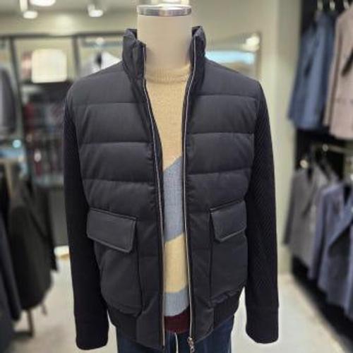 [파렌하이트]남성 가을 겨울 다크네이비 하이넥 슬리브 니트 다운 점퍼 FLSD53