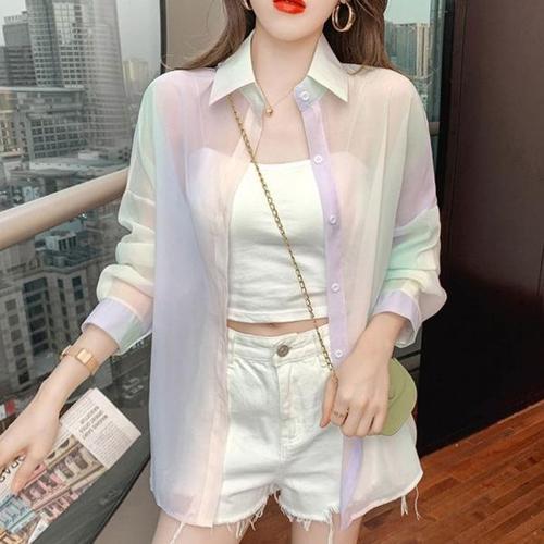 [오너클랜]인기상품 파스텔 레인보우 셔츠 캔디 시스루 여성 가디건 [WB2170D_250918]