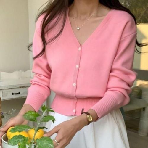 [옷자락]여성 싱글버튼 크롭 소프트 덤블 니트 파스텔 카디건