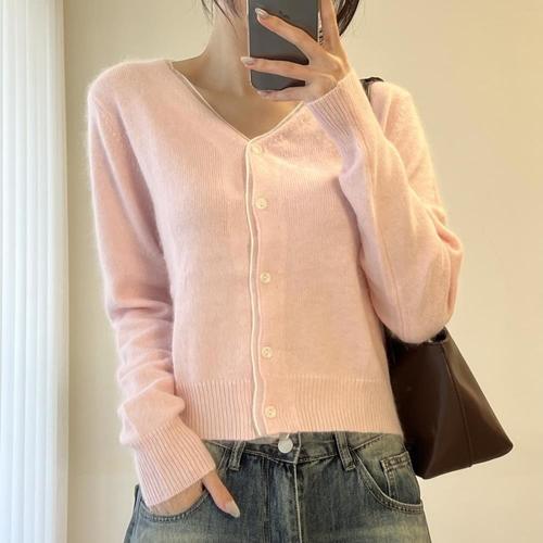 [옷자락] 여자 라쿤니트 오간자 레이어드 브이 울 파스텔 가디건