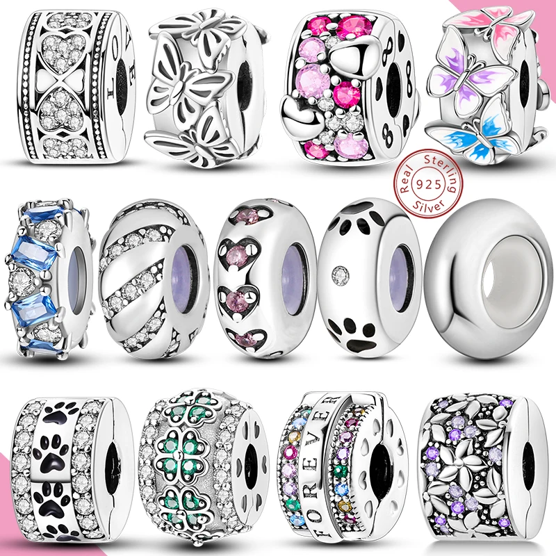 부적 맞는 원래 구슬 925 스털링 실버 클립 매력 지르콘 실리콘 스페이서 비즈 맞는 팔찌 여성 DIY 선물
