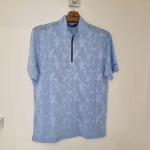 [팜스프링스]시스루 라인 배색 반팔 카라 티셔츠 스카이블루 남성 SKTM252350
