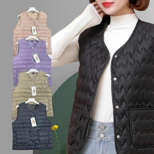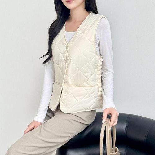 여자 경량 패딩조끼 브이넥 물결 퀼팅 조끼 가을 겨울 데일리 레이어드룩