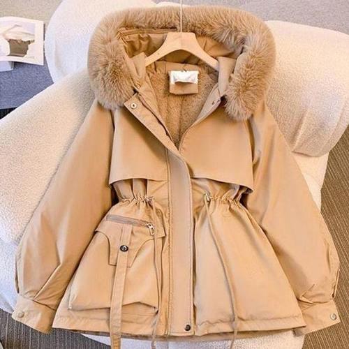 ORZQU 겨울 여성 후드 퍼 카라 코트 도톰한 숏 루즈핏 점퍼