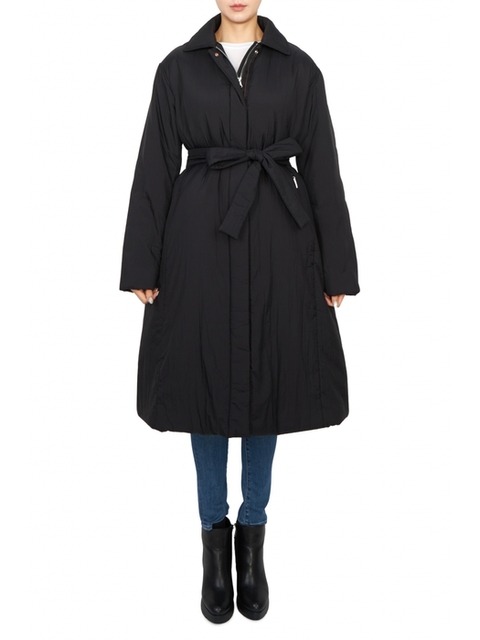 ZAJA 가을 겨울 여성 블랙 패딩 점퍼 더블 퀼팅 벨티드 보온 기질 패딩 코트