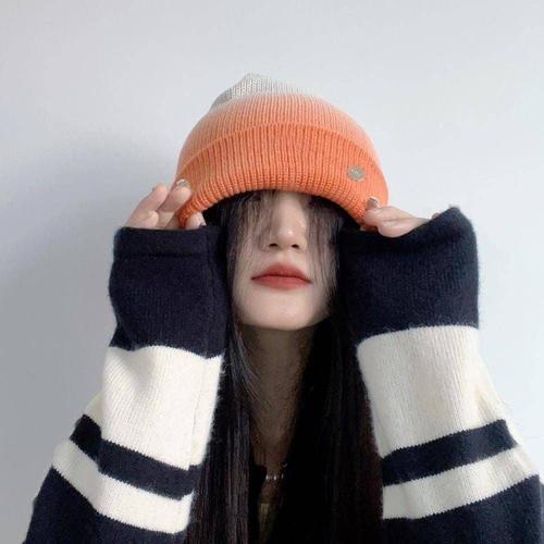 TBZ 오렌지 그라데이션 겨울 보온용 니트비니 패션모자 WFNM0Y0